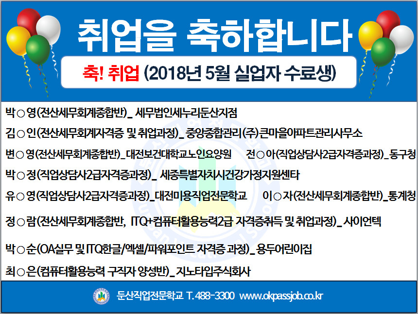 2018년 5월 실업자수료생 취업현황