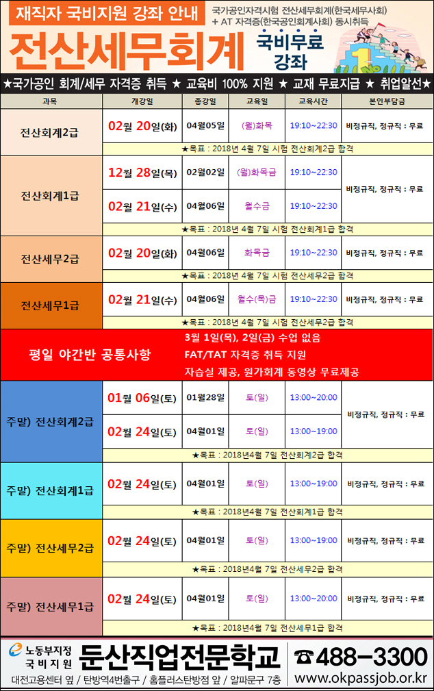 12월~2월 재직자 전산세무회계/ERP회계/세무회계 실무 강좌 안내