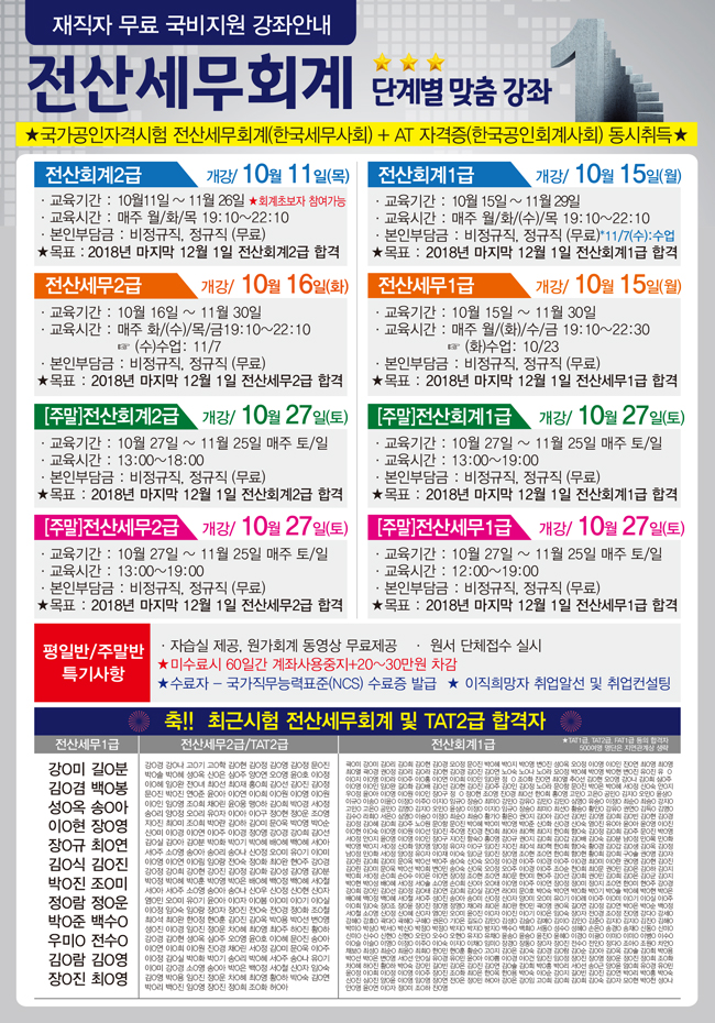 10~11월 재직자 전산세무회계/ERP회계/세무회계 실무 강좌 안내