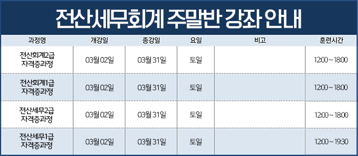 2019년 4월 6일(토) 실시하는 전산세무회계 자격시험 대비
