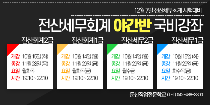 2019년 11월 30일(토) 실시하는 전산세무회계 자격시험 대비